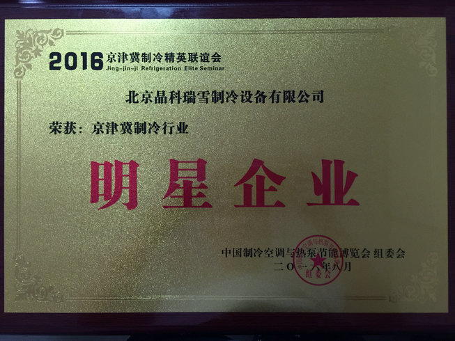 榮獲2016年度京津冀制冷行業(yè)明星企業(yè)稱(chēng)號(hào)