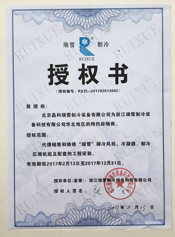 浙江瑞雪制冷科技有限公司華北地區(qū)經(jīng)銷(xiāo)商